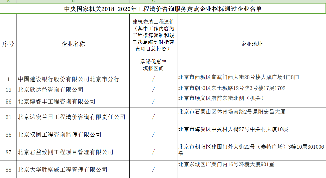 热烈祝贺公司入库中央国家机关2018-2020年工程造价咨询服务定点企业